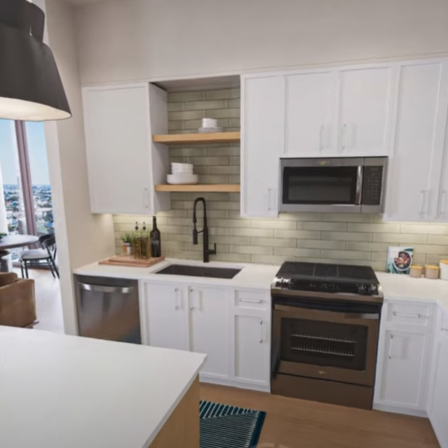 1010 Waugh Apartments offers everything you expect from high-rise living in the heart of Houston, and then some. We’ve created a variety of spaces on different levels of the community for you to explore. Enjoy a cozy wait for your ride next to the fireplace in our rideshare lounge. Practice your swing in our golf simulator. Mingle in the social lounge over a game of shuffleboard or entertain friends at the indoor/outdoor sky lounge and deck on the 14th floor. Inside, your home offers the same attention to detail with thoughtful touches like roller shades, a sleek tile backsplash, and USB outlets.