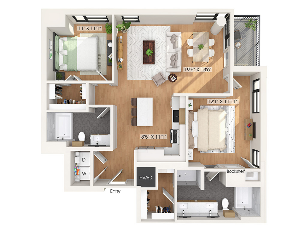 1010 Waugh Apartments offers everything you expect from high-rise living in the heart of Houston, and then some. We’ve created a variety of spaces on different levels of the community for you to explore. Enjoy a cozy wait for your ride next to the fireplace in our rideshare lounge. Practice your swing in our golf simulator. Mingle in the social lounge over a game of shuffleboard or entertain friends at the indoor/outdoor sky lounge and deck on the 14th floor. Inside, your home offers the same attention to detail with thoughtful touches like roller shades, a sleek tile backsplash, and USB outlets.